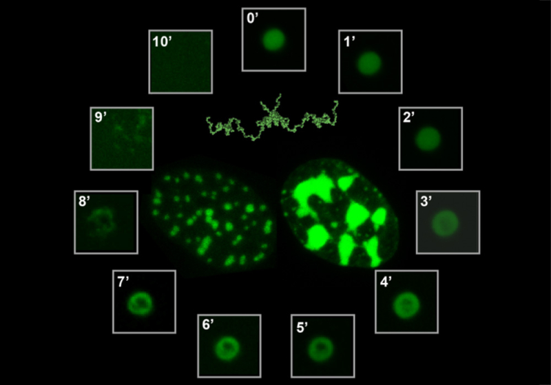 Ils ont étudié le comportement de ces protéines in vitro et dans des cellules de mammifères. Résultat: HP1 de levure et de mouche forme bien des condensats par séparation de phases et regroupe la chromatine en structures denses. En revanche, HP1 de souris en est incapable.