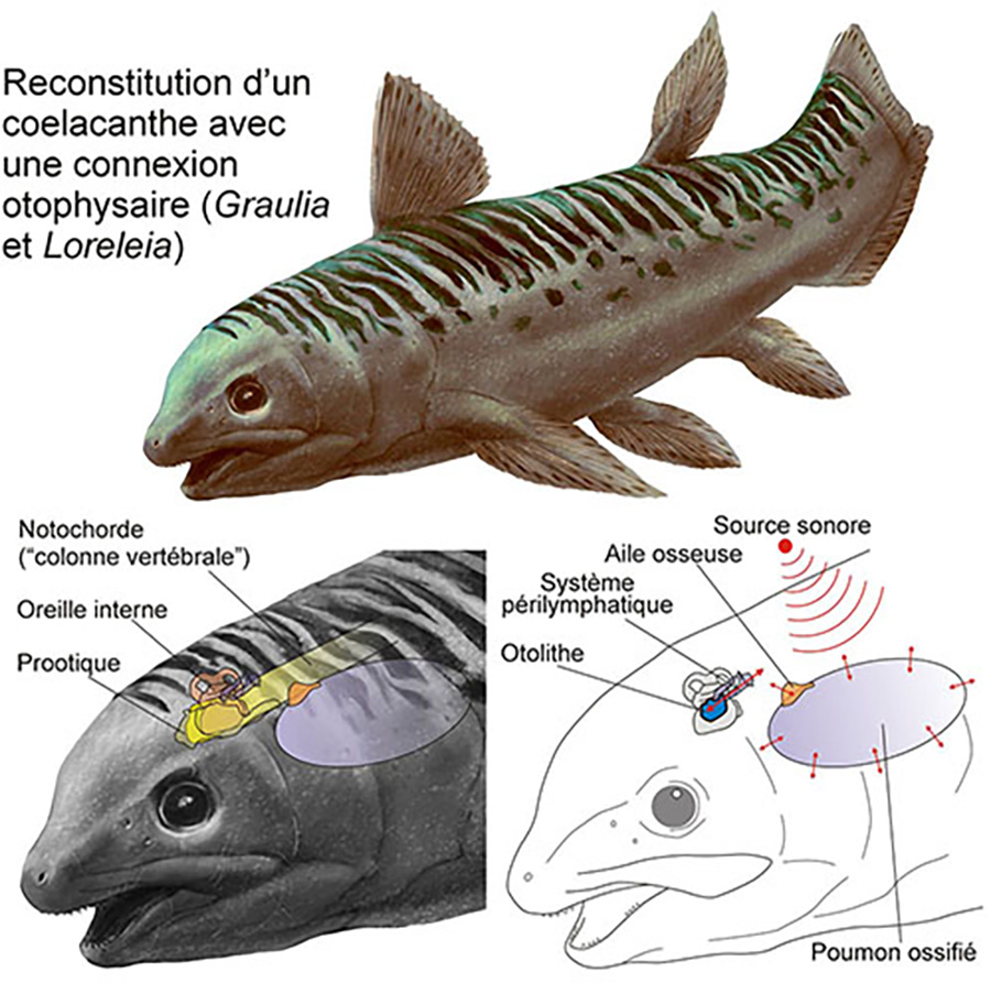 Une équipe internationale de scientifiques du Muséum d'histoire naturelle de Genève (MHNG) et de l'Université de Genève (UNIGE) révèle que certains cœlacanthes, des poissons vieux de 240 millions d'années, utilisaient leur poumon pour capter les sons sous l'eau.