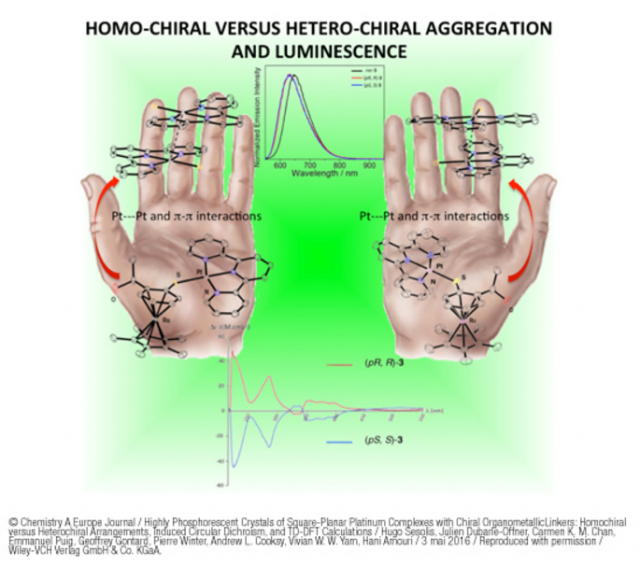 Institut parisien de chimie moléculaire ont donc voulu voir s'il était possible de contrôler la luminescence de complexes organométalliques en jouant sur leur chiralité.