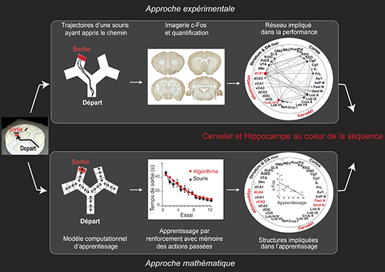 Ainsi, la convergence des résultats mathématiques et expérimentaux (voir figure) a permis de démontrer que le cervelet et l'hippocampe jouent ensemble un rôle central lorsqu'il s'agit d'organiser son déplacement spontané en une séquence d'actions orientées vers un but.