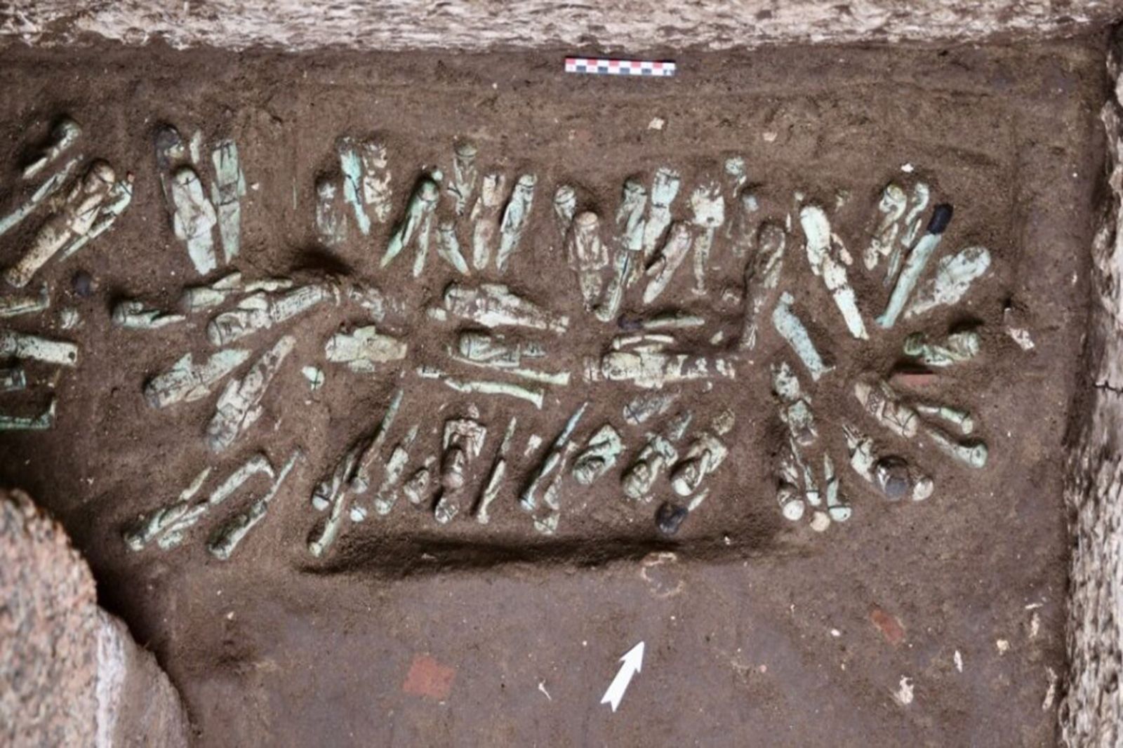 Une partie des figurines découvertes. Egyptian Ministry of Tourism and Antiquities