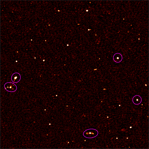 Ces sources sont pour la majeure partie des noyaux actifs de galaxies, dont l'émission dans le domaine radio résulte de la chute de matière dans les trous noirs super-massifs situés au coeur des galaxies. Ces trous noirs peuvent être plusieurs milliards de fois plus massifs que le soleil.