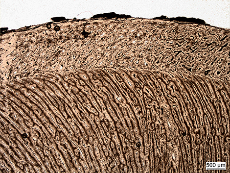 De plus, les os de R. mertensi et ceux d'autres espèces de plésiosaures ont été scannés par microtomographie à rayons X afin d'accéder à leur structure interne, et analysés par microscopie pour étudier la composition des tissus. Ces observations ont permis de déduire que le spécimen était un juvénile, âgé d'un peu plus d'un an, et que cette espèce avait une croissance rapide. Cette vitesse de croissance élevée, proche de celles observées chez les mammifères et oiseaux, est retrouvée chez l'ensemble des plésiosaures, suggérant qu'ils étaient des animaux à sang chaud (2). Ceci est en adéquation avec leur distribution puisque les plésiosaures se sont très vite dispersés mondialement grâce à l'efficacité de leur mode de propulsion. Capables de réguler leur température corporelle, ils ont pu s'aventurer en pleine mer et dans les eaux plus froides, résistant sans doute ainsi à l'extinction Trias-Jurassique.