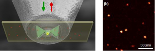 Ils se sont en particulier intéressés aux quantum-dots colloïdaux, c'est-à-dire en suspension dans un liquide, qui ont l'immense avantage d'être stables à température ambiante. Exposés à de la lumière visible, ces quantum-dots produisent des photons infrarouges. La nanoantenne développée est capable à la fois d'éclairer un quantum-dot unique, mais aussi de collecter le photon infrarouge émis. Cette nanoantenne est fabriquée au bout d'une fibre optique qui permet le transport des photons jusqu'au détecteur avec un minimum de pertes. L'ensemble a été utilisé dans un microscope optique en champ proche à balayage, qui a permis la localisation des quantum-dots avec une précision de quelques dizaines de nanomètres. Ces travaux compatibles avec les longueurs d'ondes télécom ouvrent diverses perspectives, notamment dans la cryptographie quantique.