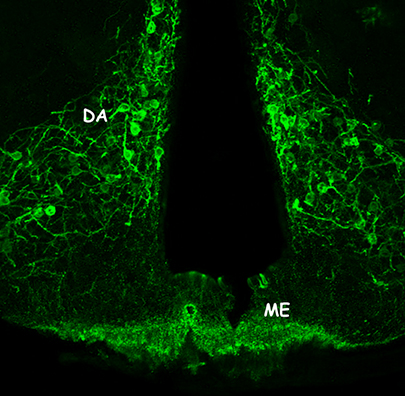 En enregistrant la libération in vivo de dopamine au niveau de la jonction cerveau-système porte hypophysaire, l'équipe de Patrice Mollard à l'Institut de génomique fonctionnelle de Montpellier a identifié un code neuroendocrine qui permet le dialogue entre le cerveau et des grandes fonctions comme la reproduction. Cette étude a été publiée le 13 février 2017 dans la revue PNAS.