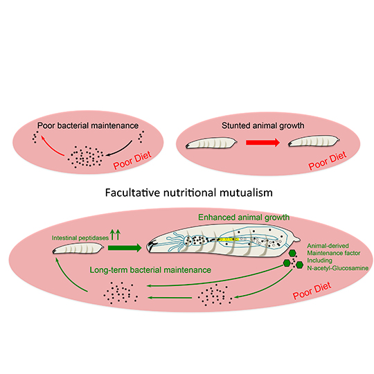 Notre compréhension des symbioses entre les animaux et leurs bactéries commensales a connu un vrai bouleversement ces dernières années, notamment grâce à la caractérisation des facteurs bactériens influençant la physiologie animale. Mais, alors que le dogme veut seulement que la bactérie symbiotique bénéficie "du gîte et du couvert", les bénéfices qu'elle en retire sont rarement évalués. En d'autres termes, si la bactérie bénéficie à son partenaire animal, en tire-t-elle un avantage concret ?