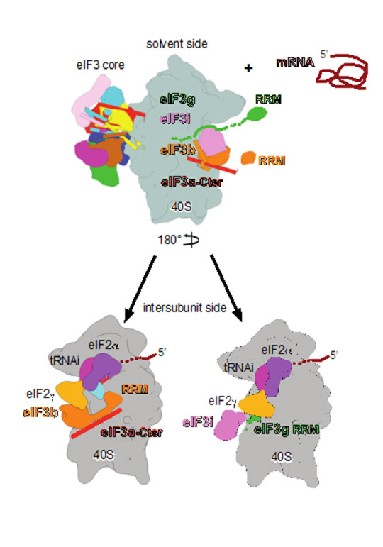 De manière inattendue, les chercheurs visualisent de larges changements de conformation des sous-unités périphériques d'eIF3 conséquents au démarrage de la lecture de l'ARNm à la recherche du signal du début de l'initiation. Ces changements de conformation régulent en partie la lecture de l'ARNm et l'association des sous-unités ribosomiques, expliquant ainsi la fidélité de la lecture et la reconnaissance de la fin du processus de l'initiation, en coopération avec d'autres facteurs d'initiation comme eIF1, 1A, 2 et 5B.