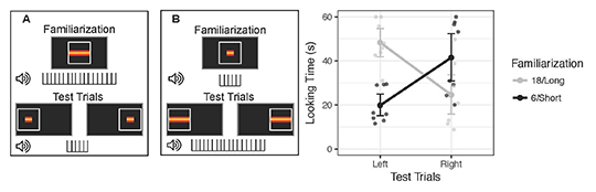 Pour tester cette alternative, nous avons observé, dans cinq expériences, des nouveau-nés âgés de moins de 3 jours. Un groupe a été soumis à un petit nombre de sons associée à une petite ligne et un autre groupe à un grand nombre de sons associé à une grande ligne. Dans une phase de test, le nombre change (de petit à grand et inversement) et est couplé avec des figures géométriques présentées successivement à gauche ou à droite de l'écran. Les réponses des nouveau-nés, évaluées par la durée de leur attention visuelle, révèlent que les petits nombres sont associés à la figure présentée à gauche de l'espace et les grands nombres, à celle de droite. Ce comportement plaide donc en faveur d'une origine innée de l'effet "SNARC".