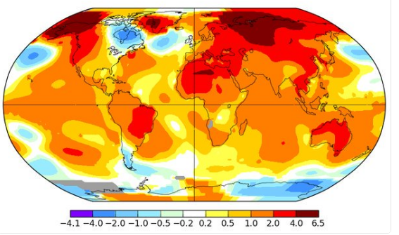 En rouge les records de températures en avril 2016. Illustration: NASA