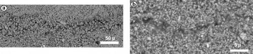 Image au microscope électronique à balayage des bandes de dilatances formées (a) dans la nature pendant un processus géologique (diaclases embryonnaires) et (b) dans un modèle physique (Chemenda et al., 2011a,b).