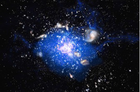 Grâce aux radiotélescopes Karl G. Jansky VLA (1) et, surtout, ATCA (2), l'équipe a réalisé que les galaxies de l'amas baignent dans un nuage géant de gaz froid qui les alimente en matière. Les chercheurs ignorent cependant comment ce nuage est structuré ni comment il s'est formé. Ils affirment en revanche qu'il s'étend tout autour des galaxies comme un halo, avec une masse de 100 milliards de fois celle du Soleil et une température de -200°C. Il est principalement composé de dihydrogène, qui alimente la formation des étoiles au sein de l'amas. Il s'agit en effet du matériau de base à partir duquel se constituent les étoiles et les galaxies. Comme ce gaz est difficile à détecter, les astronomes se sont focalisés sur un gaz traceur, le monoxyde de carbone, puis en ont déduit la masse du nuage de dihydrogène. Les astronomes ont ainsi trouvé une partie des atomes manquants de l'univers, qui échappaient jusqu'à maintenant à une détection directe. Cette découverte va donc pousser les astronomes à revoir leur compréhension de la formation des galaxies massives dans l'Univers jeune.