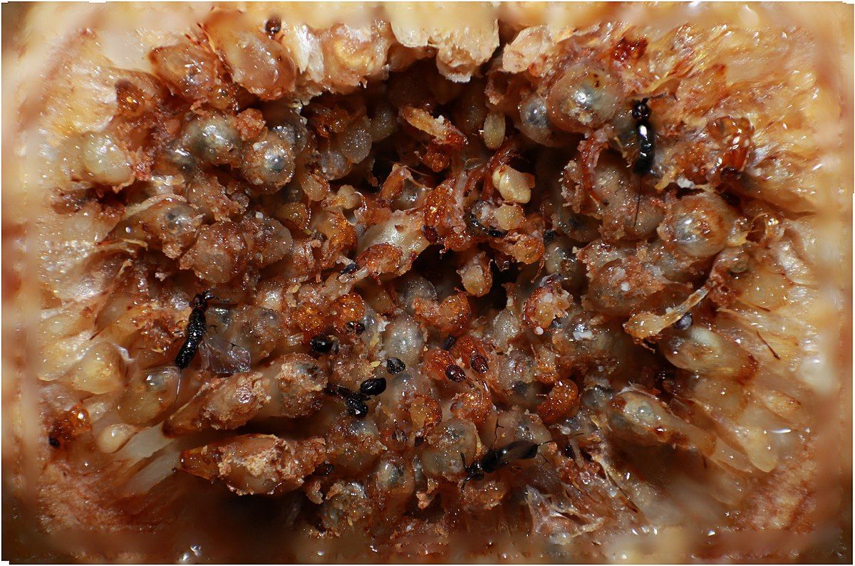 Même lorsqu'une guêpe meurt à l'intérieur d'une figue sauvage, son corps se décompose complètement durant le processus de maturation du fruit. Carlos Machado, professeur de biologie à l'Université du Maryland, explique dans Live Science que les textures croquantes parfois ressenties en mangeant des figues proviennent exclusivement des graines de la plante. Les restes d'insectes, s'ils existent, sont méconnaissables et parfaitement comestibles, ne présentant aucun risque pour la consommation humaine.