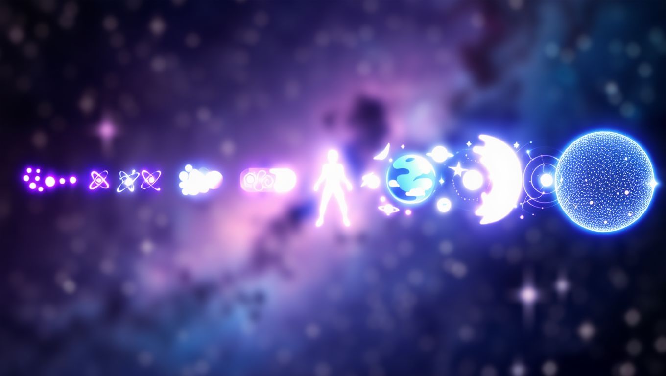 Ce vertige des échelles nous rappelle à quel point notre perception est limitée. Nous vivons à une taille où nous percevons certaines lois de la physique, que l'on dit “classiques”, là où nous pouvons saisir des objets, marcher, respirer. Du grain quantique subatomique aux amas de galaxies, nous avons notre place au milieu du vertige cosmique. L'homme n'est pas perdu entre deux extrêmes: il est un lien conscient entre le rien et le tout.
