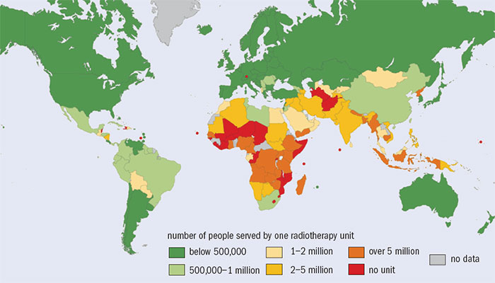 Si vous habitez dans un pays à revenu faible ou intermédiaire, vos chances de guérir d'un cancer sont considérablement plus minces que si vous habitiez dans un pays riche. Cela est en grande partie lié à la disponibilité des traitements par radiothérapie.
