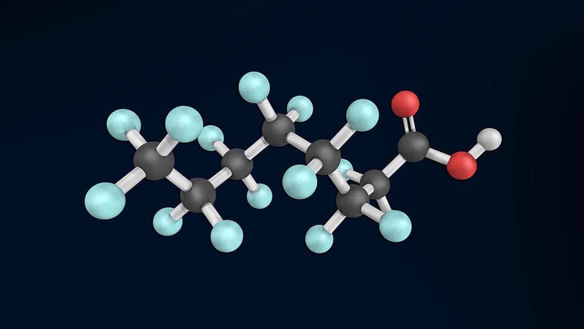 Représentation moléculaire d'un acide perfluorooctanesulfonique, catégorisé comme PFAS. Crédit: University of Nebraska - Lincoln