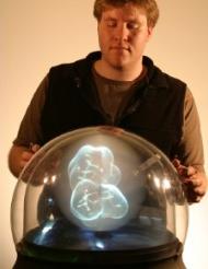 écran sphérique qui affiche des images en 3D volumétrique dans un