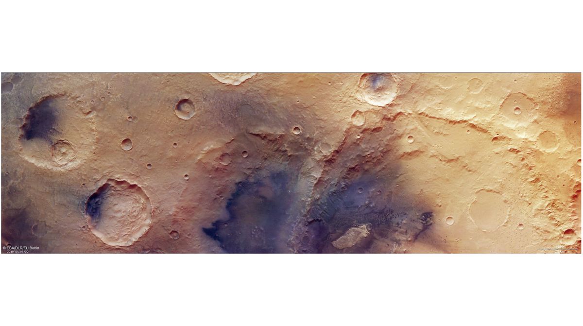 Mars Express en octobre 2024. Après un traitement approfondi, ces images offrent désormais une vision colorée et détaillée de ce terrain ancestral, dévoilant des structures que le temps a patiemment sculptées.