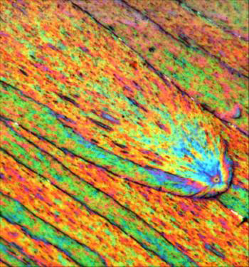 Pour obtenir ce résultat, les chercheurs ont cassé des échantillons de plexiglas® en variant la force effectivement appliquée pour ouvrir la fissure. Ils observent logiquement que l'échantillon se rompt d'autant plus vite que la force appliquée est élevée. Au-delà d'une certaine vitesse de rupture, la propagation de la fissure s'accompagne de la naissance, sur de minuscules défauts toujours présents dans le matériau, d'une multitude de microfissures en avant du front de fissure principal. Ces microfissures se créent au rythme de centaines de millions par seconde (soit un temps caractéristique de 10 nanosecondes), ce qui rend impossible leur suivi en temps réel au cours de l'expérience. Cependant chaque microfissure laisse son empreinte sur les surfaces de rupture (voir figure ci-dessous), que les chercheurs ont tout le temps d'analyser après l'expérience.