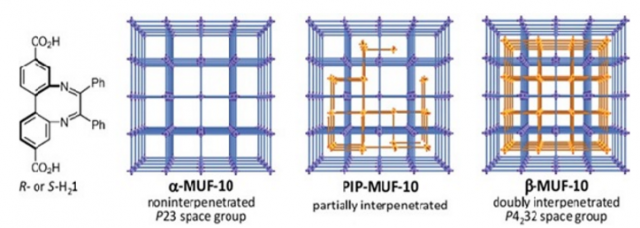 Les chercheurs ont pu ainsi faire varier de manière entièrement contrôlée l'imbrication du simple au double, phénomène encore jamais observé. Ils peuvent ainsi moduler de manière fine les propriétés physico-chimiques des matériaux, afin de trouver un équilibre entre capacité de stockage de gaz, stabilité mécanique et surface interne disponible pour l'adsorption ou la catalyse. Ces travaux ouvrent également la voie à la synthèse de nouveaux matériaux de grande porosité basés sur un renforcement du réseau pour éviter l'imbrication.