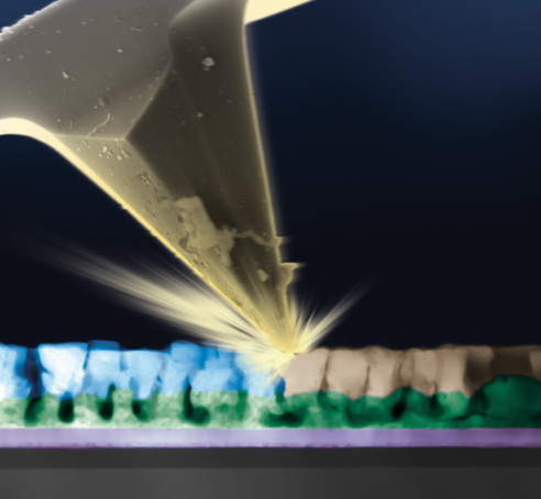 Les chercheurs ont pu montrer que ces hétérostructures pouvaient basculer d'un état de polarisation ferroélectrique à l'autre (up/down), et, indépendamment, d'un état de résistance électrique haute à un état de résistance électrique basse. Ces transitions sont provoquées en appliquant une force ou un champ électrique, à l'aide de la pointe d'un microscope à force atomique (AFM). La combinaison de ces deux états bistables donne, en pratique, trois configurations (les états "polarisation up" et "résistance faible" ne pouvant être obtenus simultanément). Ce type de dispositif permettrait de créer des capteurs, et des systèmes de stockage de données. L'équipe veut maintenant utiliser le même procédé pour réaliser des structures à base de ferrite de bismuth (BiFeO3), un matériau ferroélectrique, ferromagnétique et magnétoélectrique, déjà très étudié dans le but de créer de nouveaux dispositifs de mémoires.