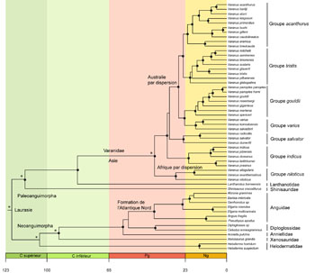 Si les varans sont une famille emblématique de reptiles, leur histoire biogéographique reste très controversée puisque trois hypothèses s'affrontent:
