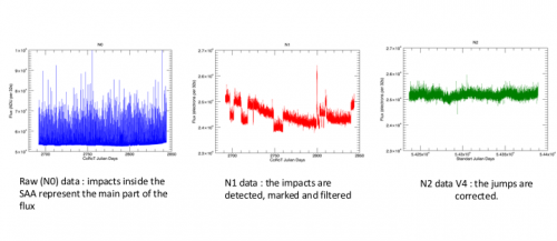 Il s'agissait entre autres de supprimer le problème particulièrement aigu des pics de signal et des discontinuités induits par le bombardement des particules cosmiques, de corriger le vieillissement de l'instrument et les biais systématiques sur les détecteurs.