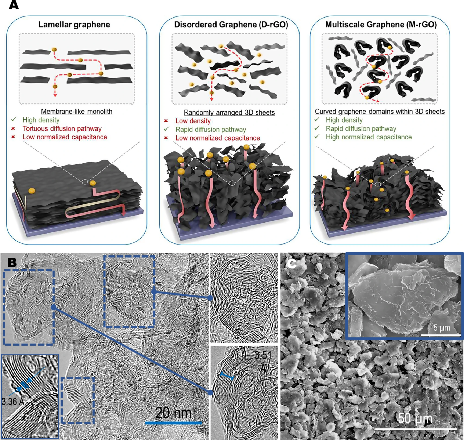 Le matériau clé de cette avancée est appelé oxyde de graphène réduit multiscalaire. Il est produit à partir de graphite naturel, une ressource abondante en Australie. Grâce à un procédé de traitement thermique rapide, les chercheurs ont créé une structure de graphène particulièrement incurvée qui permet aux ions de circuler avec une grande rapidité et efficacité. Cette architecture unique combine une densité énergétique élevée avec une puissance importante, une association rare dans un seul dispositif.