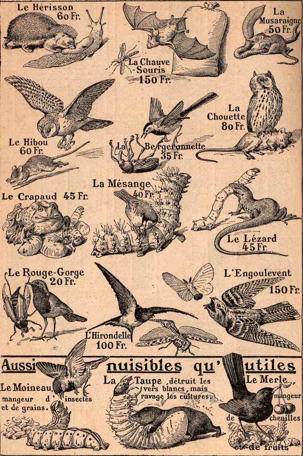 Petits défenseurs de l'agriculture qui par les insectes qu'ils détruisent évitent chacun par an une perte de 20 à 150 Fr.
