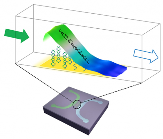 Le dosage de biomarqueurs moléculaires dans le sang pour améliorer la prise en charge de certains cancers est un domaine de recherche en plein développement. Une équipe du Laboratoire d'analyse et d'architecture des systèmes (LAAS-CNRS), en collaboration avec des chercheurs du Centre de recherches en cancérologie de Toulouse (CRCT, Inserm/CNRS), a mis au point une puce nanofluidique qui permet d'identifier rapidement, et en une seule étape, une séquence d'ARN ou d'ADN courts, avec une précision d'une seule paire de bases.