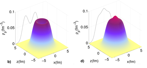 Les chercheurs ont produit des noyaux de soufre-36 et de silicium-34, ce dernier ayant deux protons de moins que le premier. Ces noyaux ont été envoyés sur une cible de béryllium et l'équipe s'est intéressée aux collisions nucléaires donnant lieu à l'arrachage d'un proton à chacun de ces deux noyaux. Ils ont déduit des observations expérimentales que les deux protons manquants au silicium-34 occupent dans le souffre-36 des orbitales localisées au centre du noyau. Dans le silicium-34, l'absence de ces deux protons créé ainsi une "bulle", formant un creux au centre du noyau tel qu'illustré dans la figure 1.