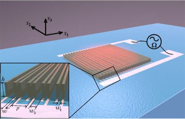 Dans leur système, les ondes acoustiques excitent un réseau de fentes en argent de 100 nanomètres de largeur et 300 nm de hauteur. Disposées sur un substrat piézoélectrique de niobate de lithium, ces cavités vibrent à la manière d'un diapason et leur géométrie se met à varier fortement. Or la lumière qui passe dans ces fentes subit un phénomène de résonance qui dépend précisément de la forme des cavités. Ainsi, pour une fréquenceacoustique de 0,5 GHz, les fentes vont fléchir avec une amplitude de 30 nanomètres et provoquer une modulation optique à 80% dans le proche infrarouge. Ces travaux devraient permettre de concevoir des dispositifs photoniques extrêmement compacts. Les composants acousto-optiques se retrouvent actuellement aussi bien dans les spectromètres accordables embarqués sur les satellites que dans les systèmes de façonnage temporel des lasers.