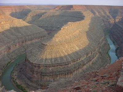 La San Juan River naît dans l'état du Colorado, au flanc des montagnes qui portent son nom. Tôt dans son histoire, la rivière s'écoulait sur un paysage plat où ses eaux tourbillonnantes courraient librement dans des méandres immuables. Au fil du temps, le fleuve a érodé son lit, creusant de profondes gorges. Le soulèvement des sols en Utah du sud et en Arizona a encore accru la profondeur des canyons.