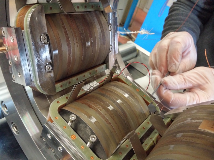 Le CIEMAT a mis au point un aimant correcteur superferrique pour le projet SLHC-PP,et ce modèle a servi de point de départ pour les correcteurs du HL-LHC. Par la suite, dans le cadre d'un accord de collaboration entre le CERN et l'INFN sur le projet HL-LHC signé en 2013, le laboratoire LASA de la section milanaise de l'Institut national italien de physique nucléaire (INFN) a pris la relève en tant que partenaire du projet. "Au LASA, nous nous sommes occupés de la conception, de l'assemblage et des essais de l'aimant, explique Giovanni Volpini de l'INFN Milan. Cela a été possible grâce aux compétences que le laboratoire a acquises en travaillant sur bon nombre des principaux aimants supraconducteurs pour la physique des hautes énergies. Mais c'est la première fois depuis de nombreuses années qu'un aimant supraconducteur grandeur nature est mis au point entièrement en interne. Nous sommes très satisfaits des résultats des derniers essais: l'aimant s'est révélé très stable, puisqu'il a permis d'atteindre et même de dépasser la valeur de champ maximale fixée dans le cahier des charges avant la survenue d'une transition résistive. La valeur de champ maximale que nous avons mesurée était près de 10% supérieure à la valeur de champ nominale. La stabilité de l'aimant jouera un rôle essentiel pour garantir la fiabilité générale de l'ensemble du système de correction des faisceaux lorsque tous les éléments matériels auront été installés dans le tunnel." "Le partenariat entre l'INFN et le CERN a été déterminant pour l'obtention de ces résultats, et il sera tout aussi important que les autres collaborations dans le cadre du projet HL-LHC pour la réalisation des objectifs du projet", précise Paolo Fessia du département Technologie, qui est responsable du projet au CERN.