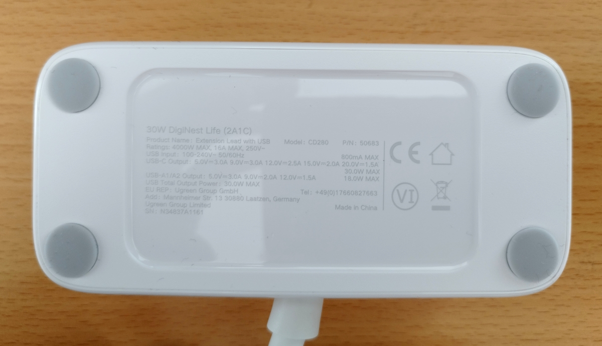 Les ports USB-C délivrent jusqu'à 30W de puissance en charge rapide lorsqu'ils sont utilisés seuls. Le port USB-A délivre quant à lui jusqu'à 18W lorsqu'il est utilisé seul. Si plusieurs appareils sont branchés sur les ports USB, la multiprise Ugreen 30W DigiNest Life répartira la puissance en fonction de la demande de chacun des appareils sans dépasser un total de 30W. Dans son ensemble, avec les deux prises électriques, la multiprise permet de délivrer jusqu'à 4000W de puissance.