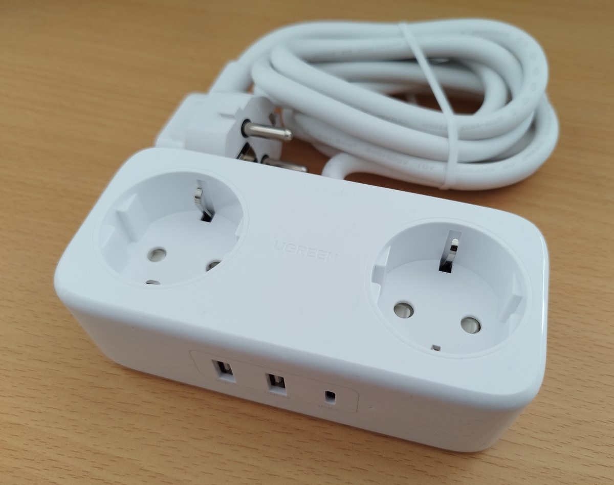 Ainsi, cette multiprise d'Ugreen possède deux prises classiques en 250V max, mais aussi deux ports USB-A et un port USB-C compatibles charge rapide. Et pour couronner le tout, la multiprise fait également office de parasurtenseur en protégeant les appareils branchés d'une hausse brutale de tension sur le réseau électrique, comme par exemple lors d'un impact de foudre à proximité.