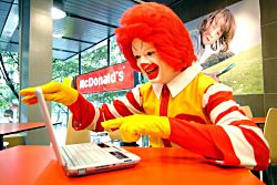 D'ici fin 2005 plus de 100 restaurants McDonald's (Alès, Nice, Lyon, Grenoble après la région parisienne) seront équipés en Wi-Fi (en partenariat avec Meteor Networks) avec toutefois une limitation à une heure de connexion par personne et avec interdiction de pratiquer le peer-to-peer...