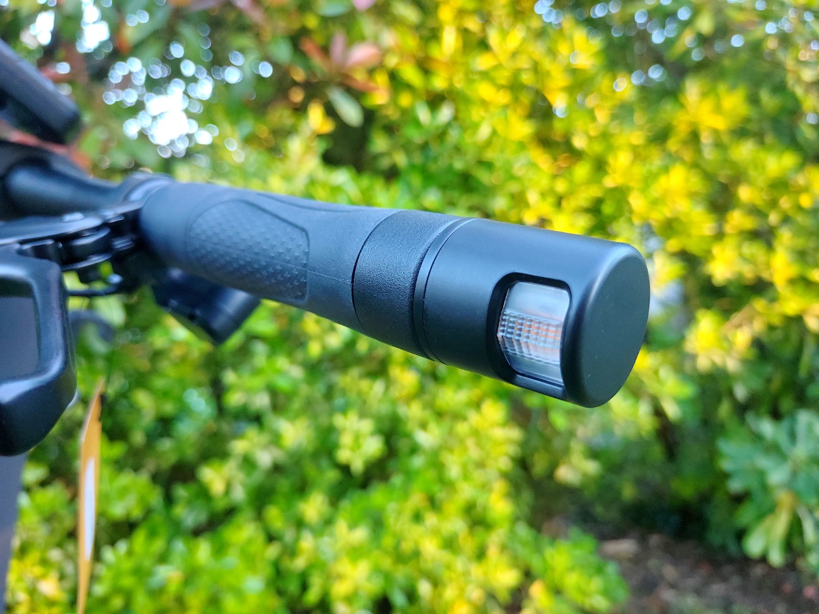 Les clignotants, justement, sont à impulsion, avec une commande bien plus qualitatives que ce que l'on trouve sur d'autres références. Les lumières se positionnent en bout de guidon, avec une LED orange vers l'avant et une autre vers l'arrière. Impossible aux autres usagers de ne pas voir l'intention de tourner.