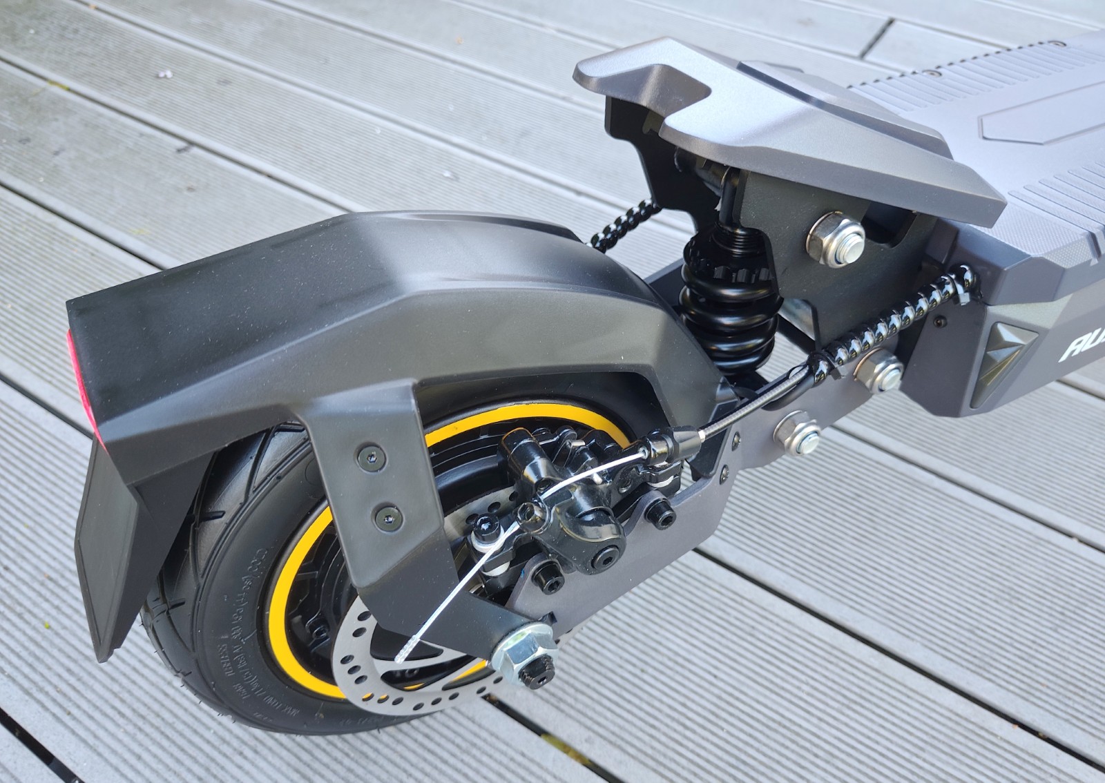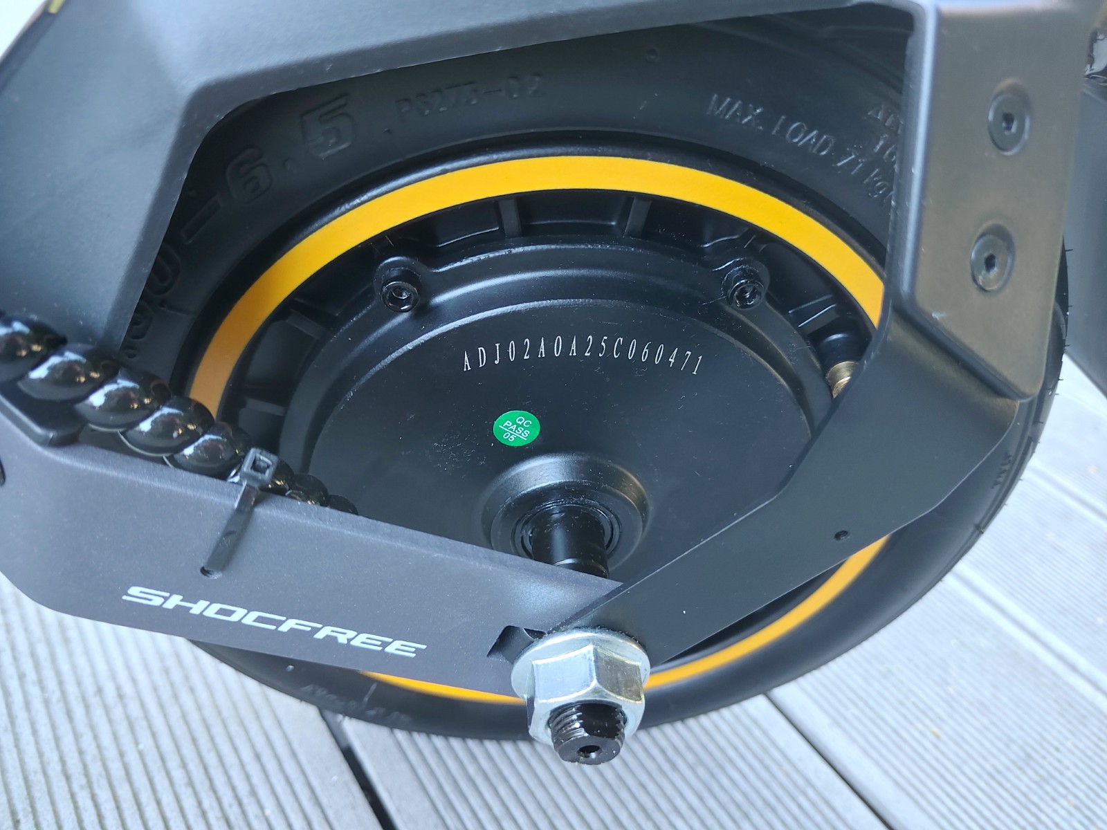 La Ausom K20 Pro en version monomoteur repose sur une architecture simple mais efficace. Le moteur est intégré dans la roue arrière, avec une puissance maximale annoncée