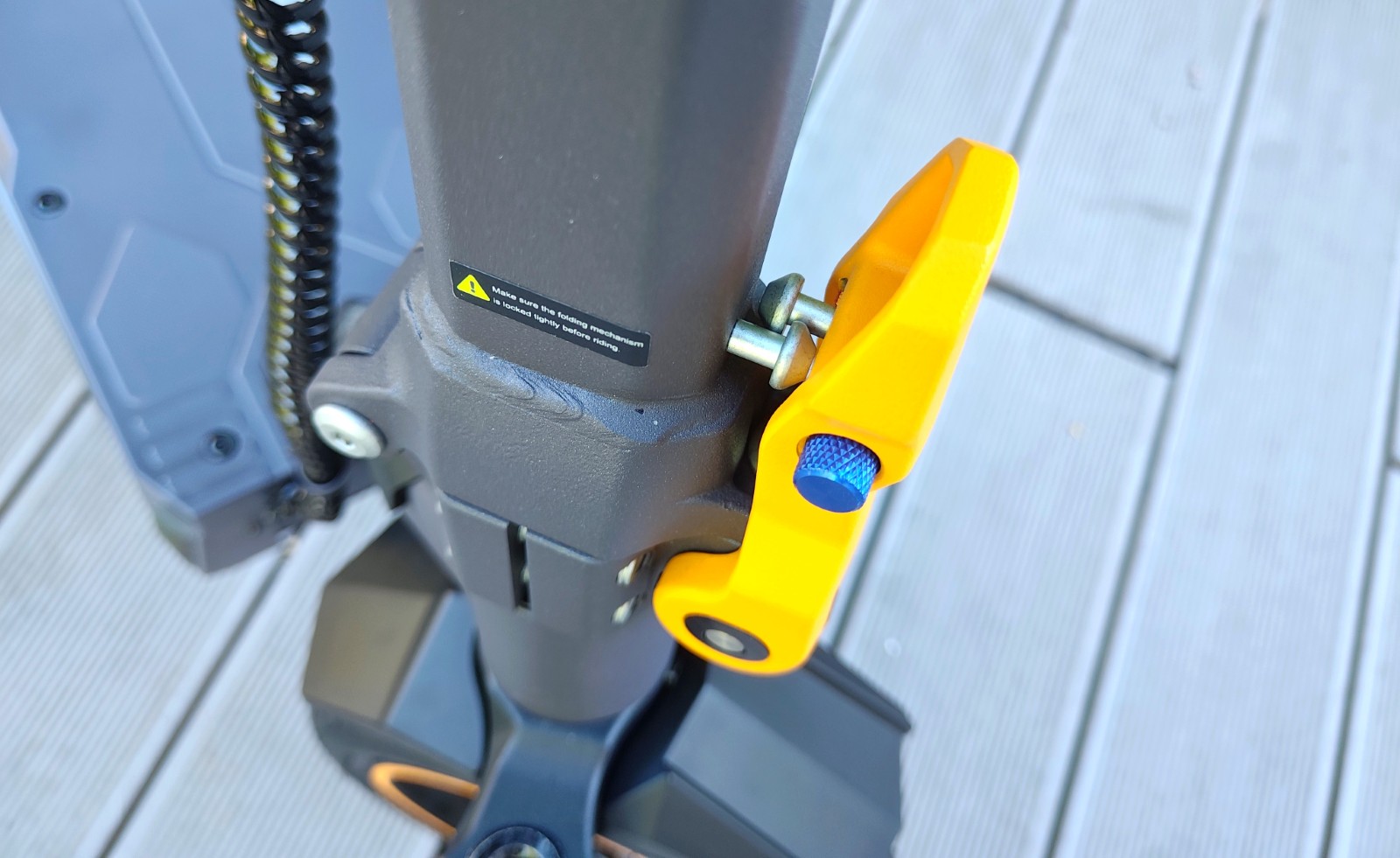 Les ajustements sont précis. Une fois le guidon en place, aucun jeu n'est perceptible. Cela confère une sensation de rigidité globale dès les premières manipulations. Le système de pliage et dépliage fonctionne correctement et se verrouille de manière franche.