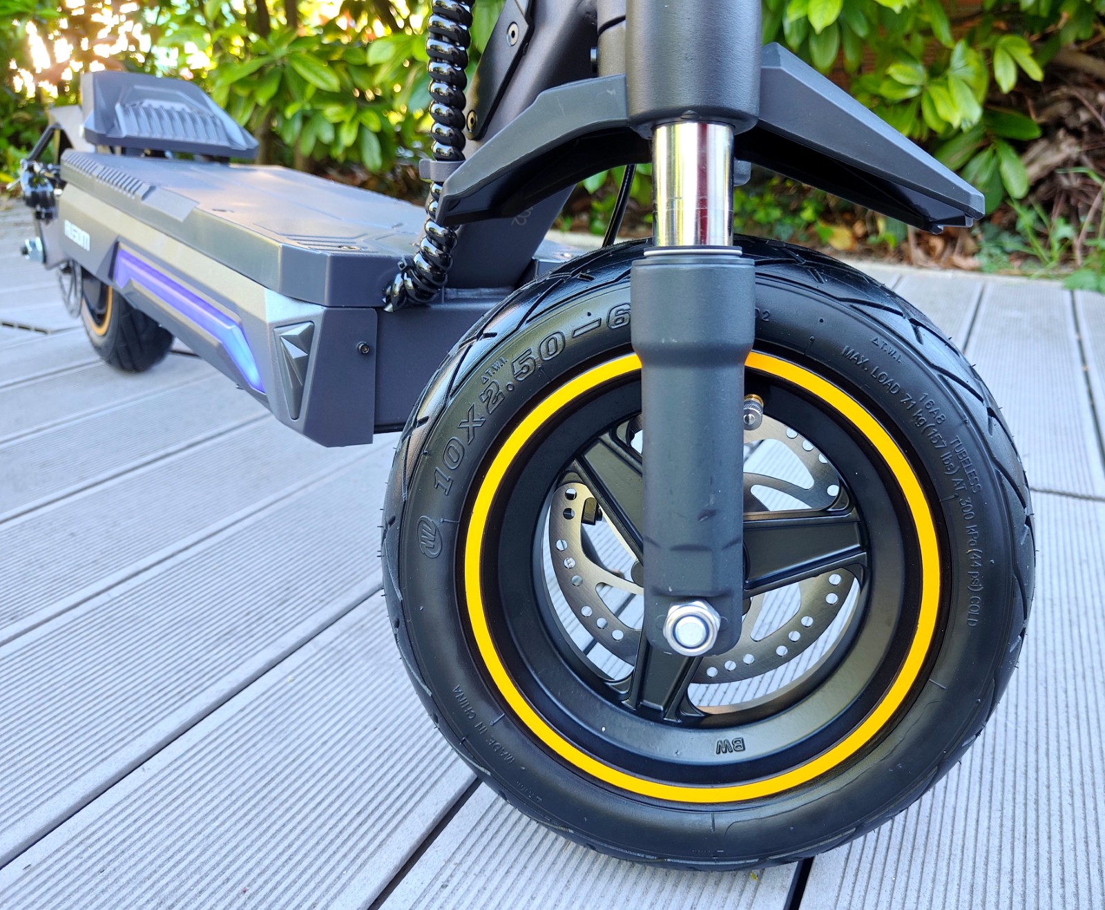 10 pouces, un standard sur ce type de modèle. Ceux-ci adoptent une conception tubeless, ce qui limite les risques de crevaison et simplifie l'entretien. La
