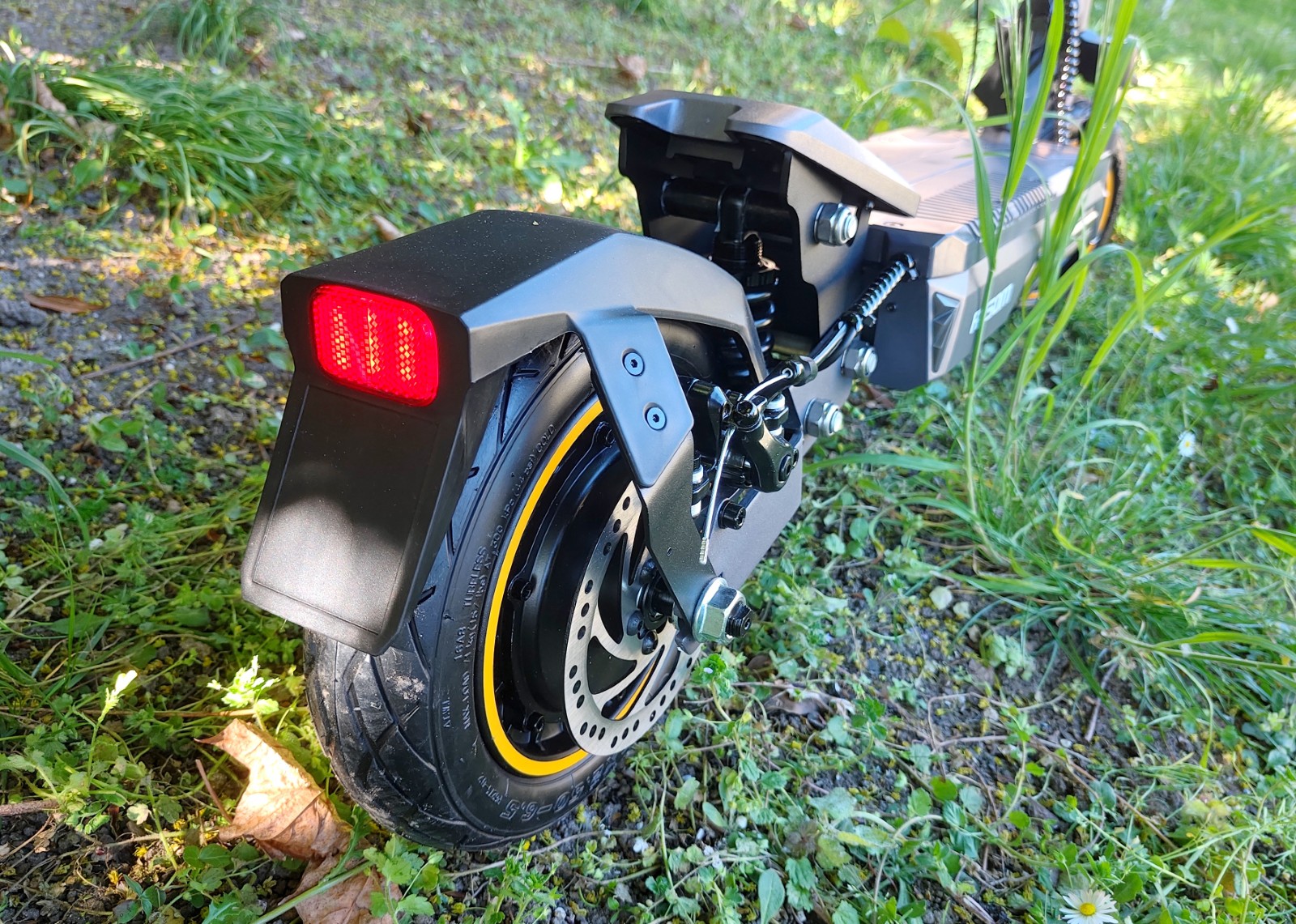 En côte, la K20 Pro surprend positivement. Sur des pentes modérées, la vitesse reste stable, sans perte. Sur des inclinaisons plus marquées, la trottinette ralentit logiquement, mais conserve une bonne motricité, toujours supérieure à 25 km/h. Le moteur arrière assure une traction efficace, même sur revêtement irrégulier.
