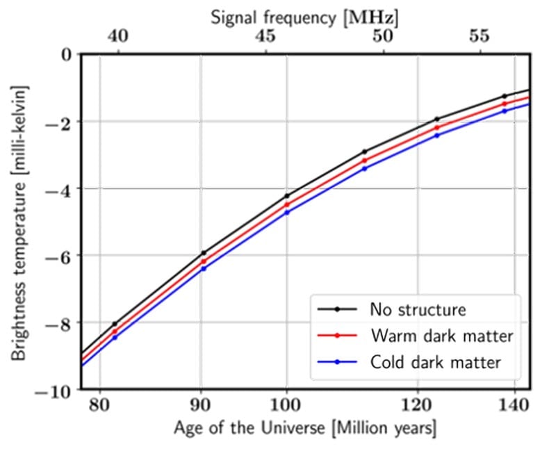 Si estas partículas son muy ligeras, inferiores al 5% de la masa de un electrón, la materia oscura se denomina "caliente" e impide la formación de estructuras cósmicas pequeñas como las galaxias enanas. Por el contrario, partículas más pesadas crean una materia oscura "fría" que favorece el desarrollo de estructuras a pequeña escala. Esta diferencia se manifiesta en la manera en que el gas primordial se aglomeró durante las Edades oscuras.