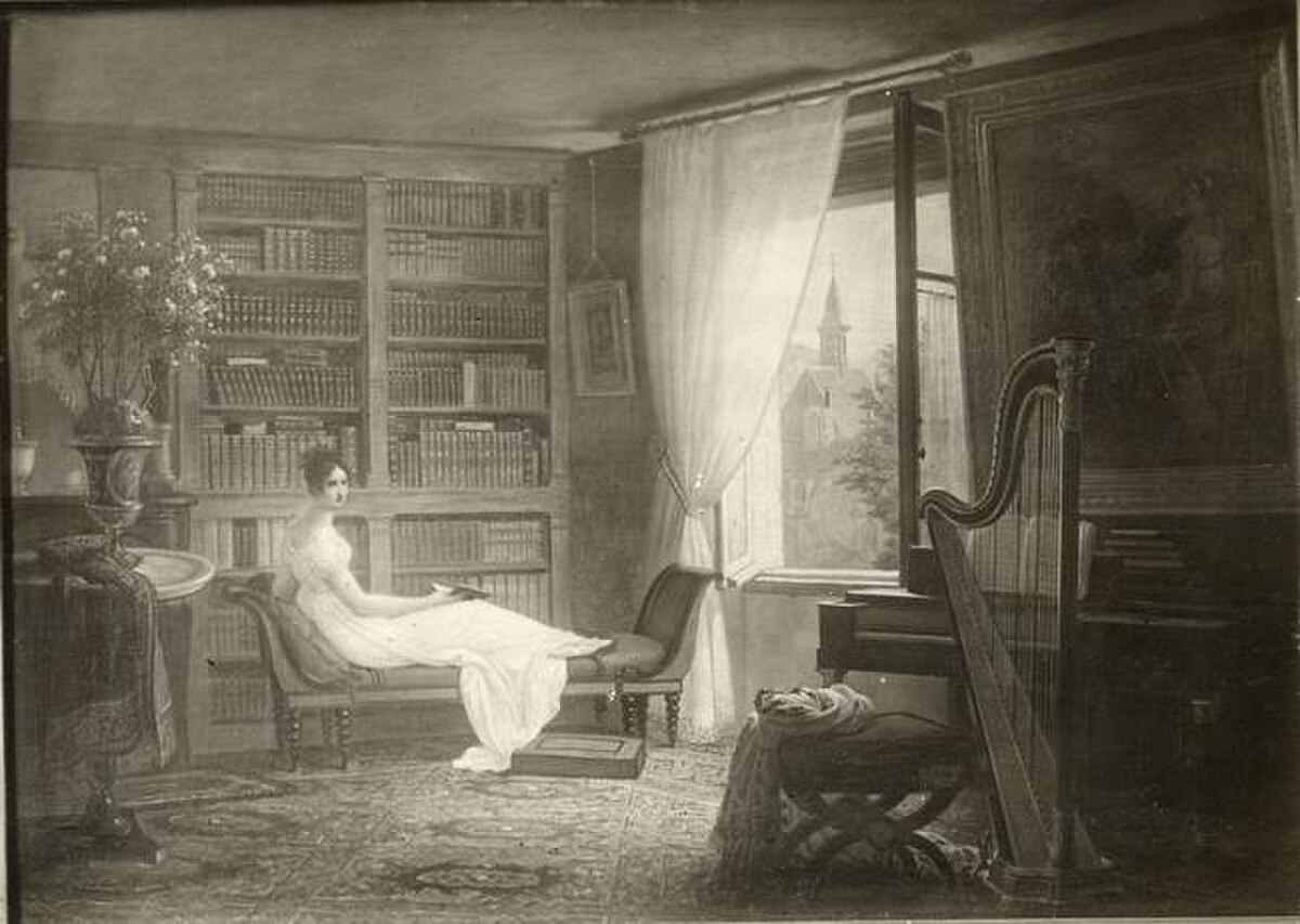 Chateaubriand, dans les Mémoires d'outre-tombe, décrit les lieux : « La chambre à coucher était ornée d'une bibliothèque, d'une harpe, d'un piano, du portrait de Mme de Staël et d'une vue de Coppet au clair de lune ; sur les fenêtres étaient des pots de fleurs. Quand, tout essoufflé après avoir grimpé trois étages, j'entrais dans la cellule, aux approches du soir, j'étais ravi : la plongée des fenêtres était sur le jardin de l'Abbaye, dans la corbeille verdoyante duquel tournoyaient des religieuses et couraient des pensionnaires. la cime d'un acacia arrivait à la hauteur de l'œil. Des clochers pointus coupaient le ciel et l'on apercevait à l'horizon les collines de Sèvres. Le soleil mourant dorait le tableau et entrait par les fenêtres ouvertes. »
