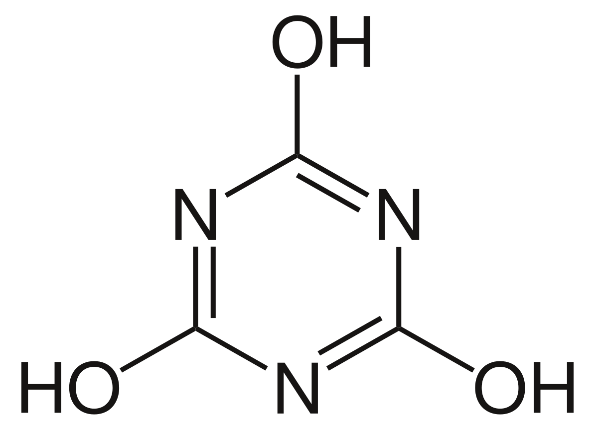 L'acide cyanurique (ou acide isocyanurique) est officiellement nommé s-Triazine-2,4,6-triol.