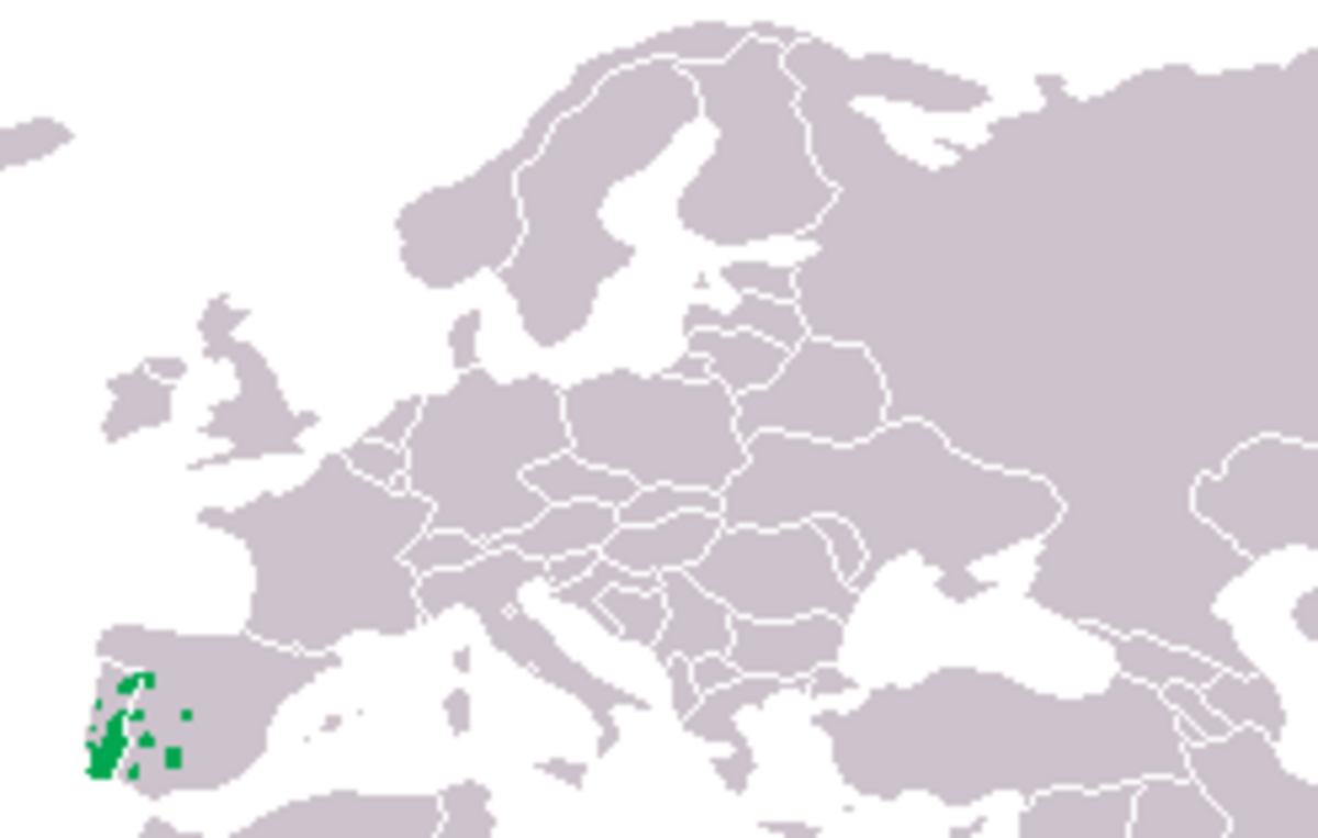 Cette espèce est endémique du sud-ouest de la péninsule Ibérique, elle se rencontre entre 100 et 1 300 m d'altitude.