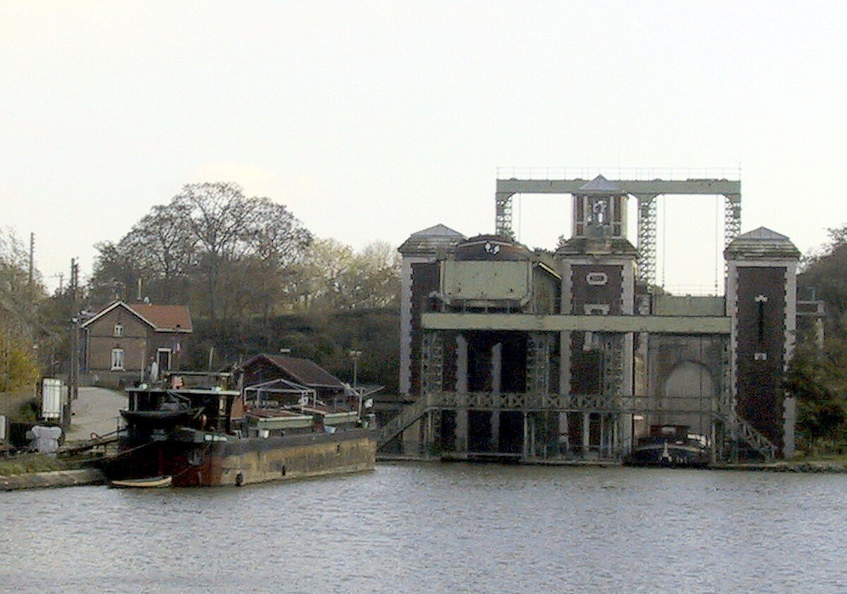 Inspirés par l'exemple de l'ascenseur à bateaux d'Anderton, mis en service quelques années auparavant en Angleterre, les Ponts et Chaussées décidèrent la construction d'un ouvrage similaire. Pour cela, le directeur de l'époque, M. Bertin, prit contact avec Mister Edwin Clark, l'architecte de l'ascenseur à bateaux anglais. Les parties métalliques de l'ouvrage ont été réalisées par la Société des anciens établissements Cail.