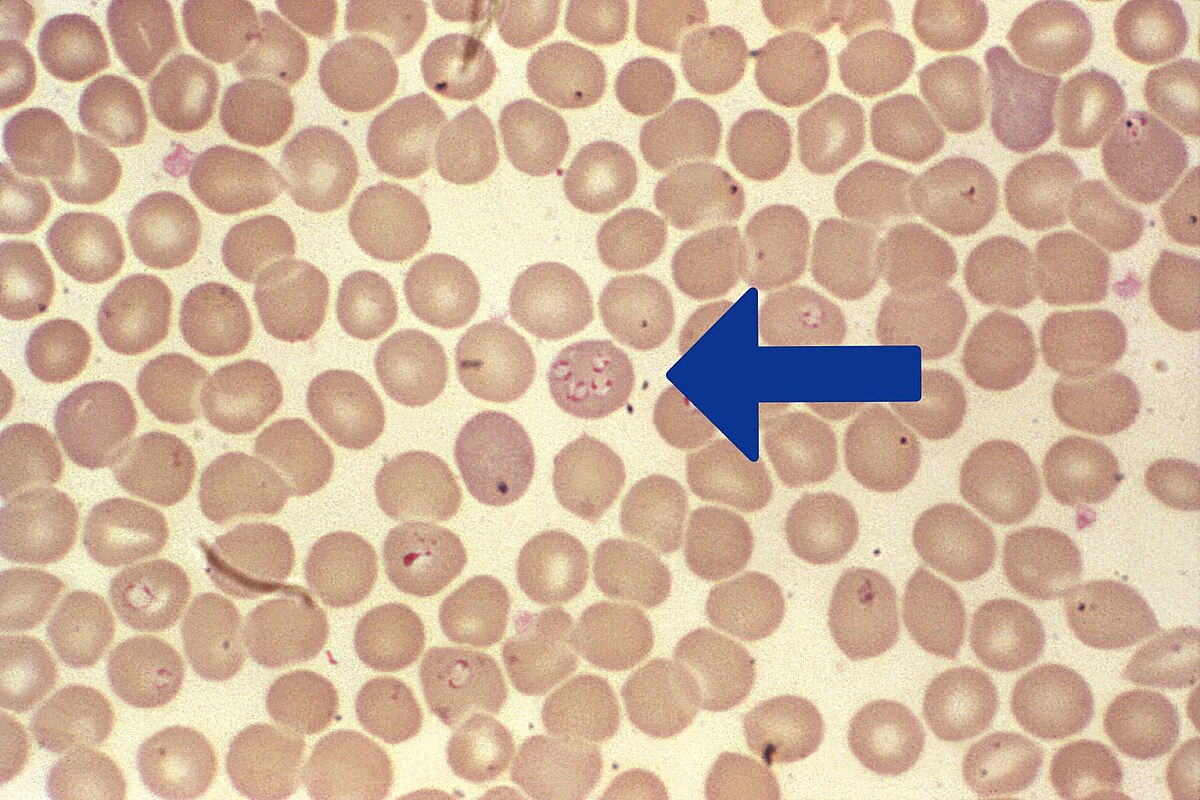 Le parasite Babesia se reproduit dans les globules rouges où on peut le voir avec des inclusions en forme de croix (4mérozoïtes non différenciés sexuellement mais attachés ensemble et formant une structure semblable à une croix de Malte et provoquant une anémie hémolytique tout à fait semblable à celle de la malaria.