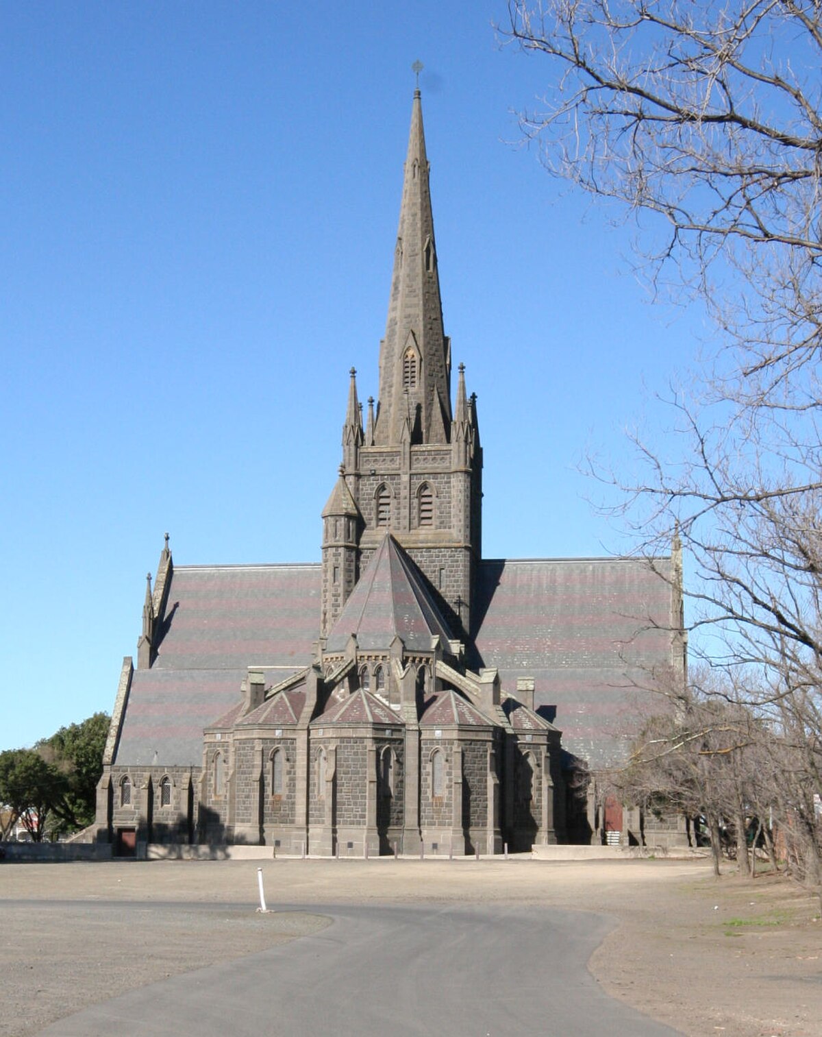 Dès 1843, un an seulement après la consécration de la chapelle, les autorités en charge de la paroisse réfléchissent à la construction d'une église en pierre, mieux à même de répondre aux besoins de la communauté. Le principe en est rapidement adopté et les plans du nouveau sanctuaire confiés à l'architecte Samuel Jackson, de Melbourne.