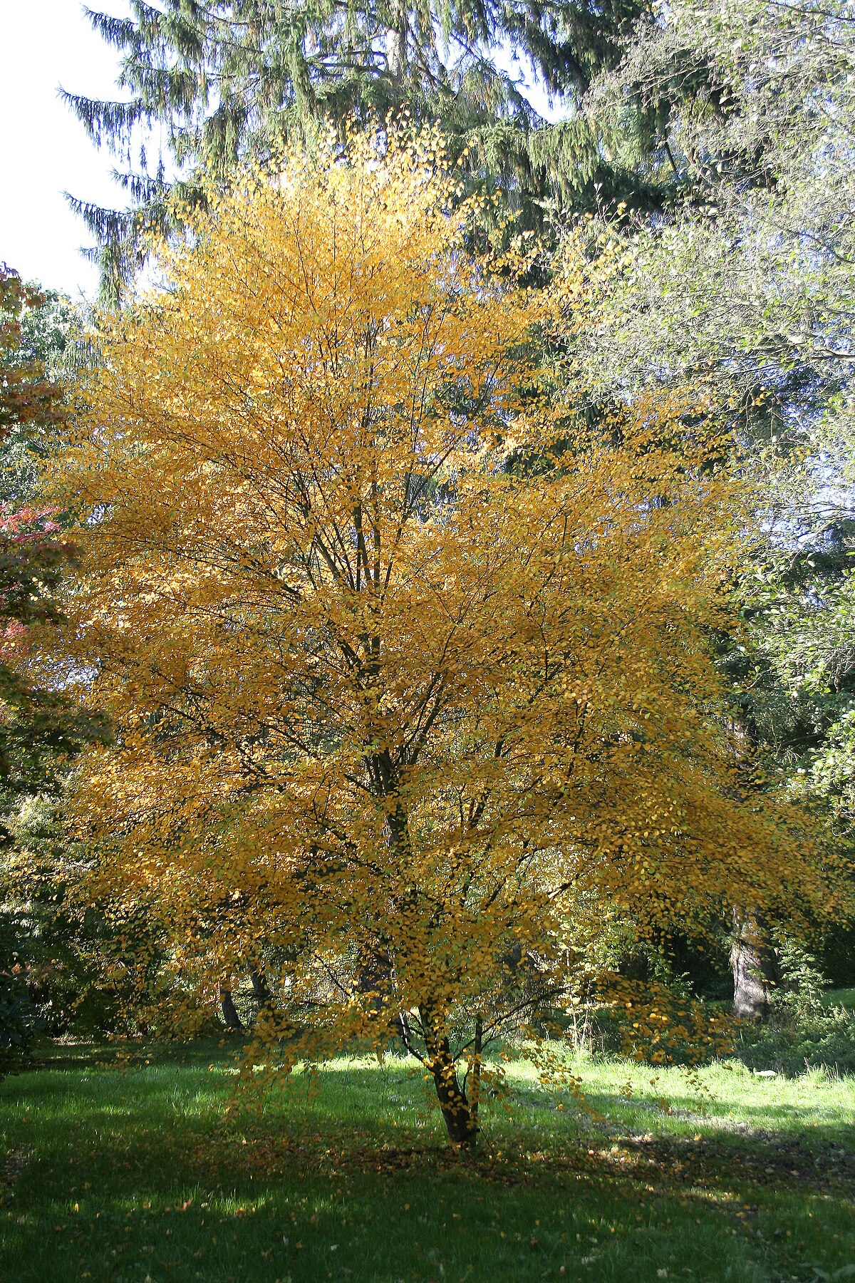 C’est un petit arbre à feuillage caduc, a couronne ovale allongée, poussant à une hauteur variant entre 6 et 12 m, avec un tronc étroit unique pouvant également pousser en cépée.