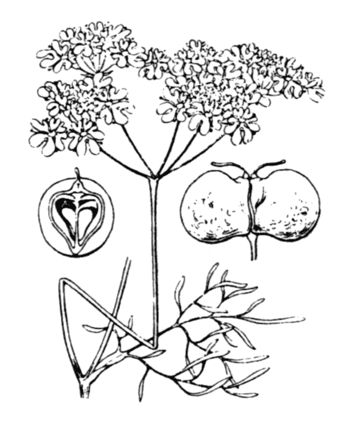 Elle est totalement glabre, à odeur forte, rappelant celle du coriandre, perceptible au froissement de la tige. L'espèce est en régression et rare sont les cultures en France.
